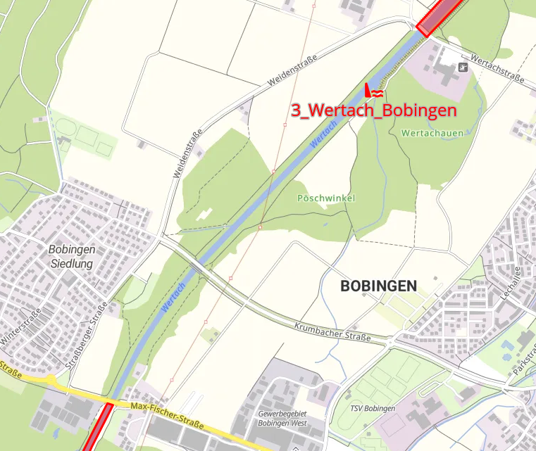 Am 11.10.2025 von 09 – 13 Uhr führt die Kreiswasserwacht Augsburg-Land Kreiswasserwachtsübung auf dem Wertachgewässer in Bobingen durch (siehe freier Ausschnitt auf der Karte